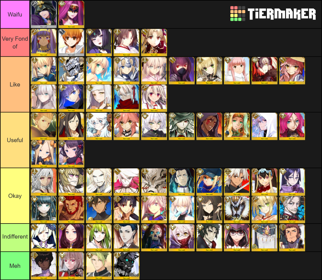 This list has been compiled and approved by major fanatics of the game. 5 tier list explanation all 5 servants are excellent. Welfare sr servants are assumed to be at np5 101010 skills. An indepth tier list for fate grand order fate go fgo na with all stars in one. S a b c and d. The story is presented in visual novel format.